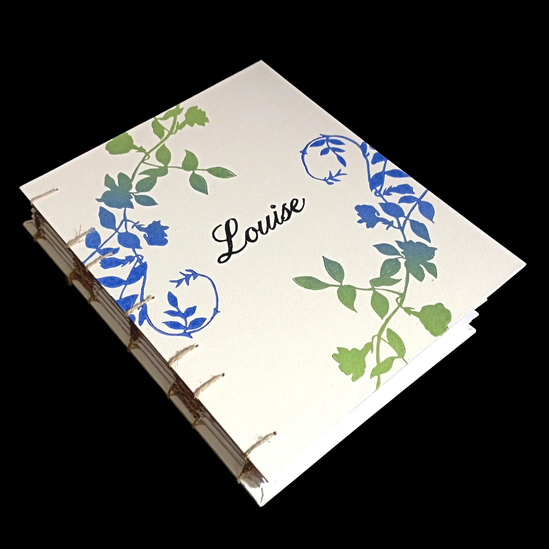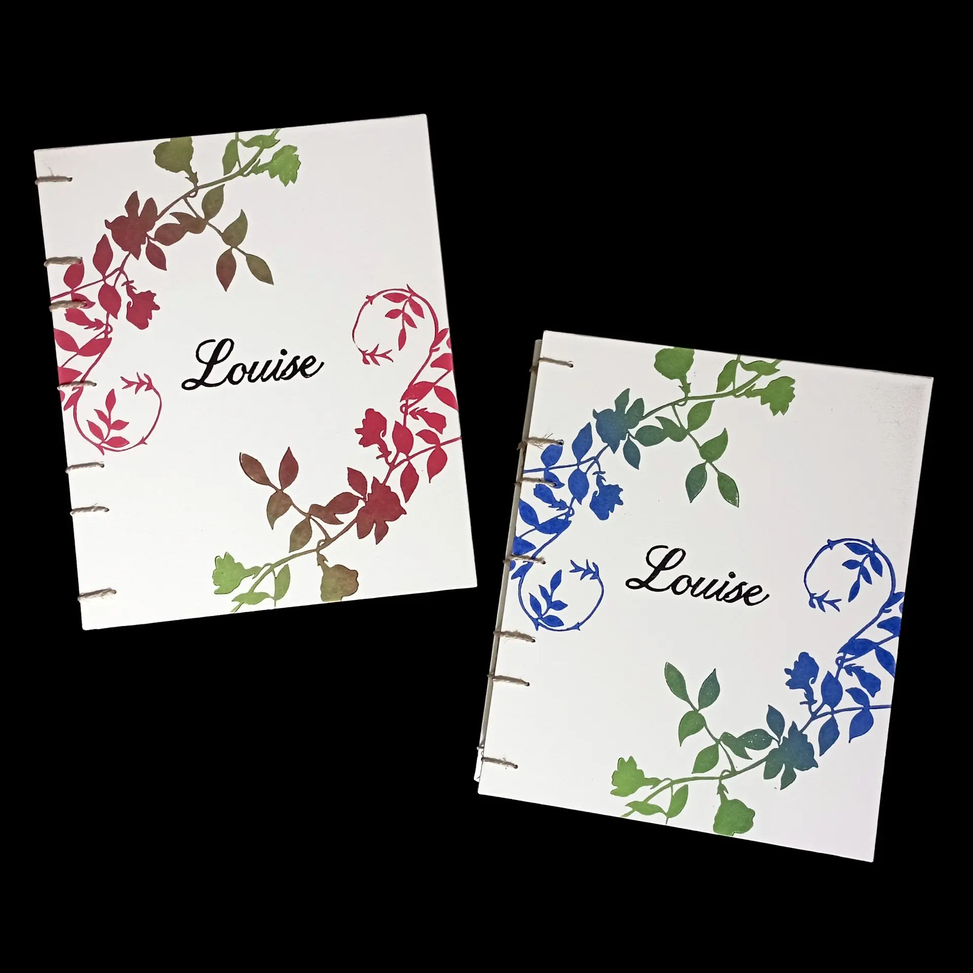 C'est le cas de cette commande, réalisée pour fêter un jour important dans la vie de Louise. Aimant les fleurs, écrire et dessiner, deux carnets ont été créés sur-mesure pour elle.