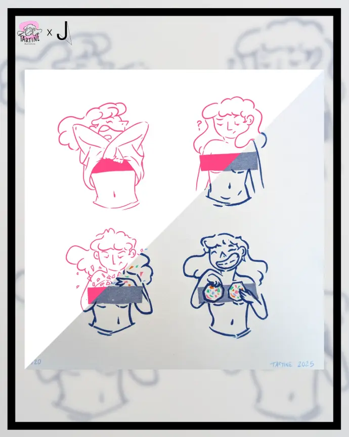 C'est ainsi que la collaboration avec l'artiste et illustratrice Just Tartine a commencé. Un véritable travail d'équipe avec beaucoup d'échanges et de curiosité.