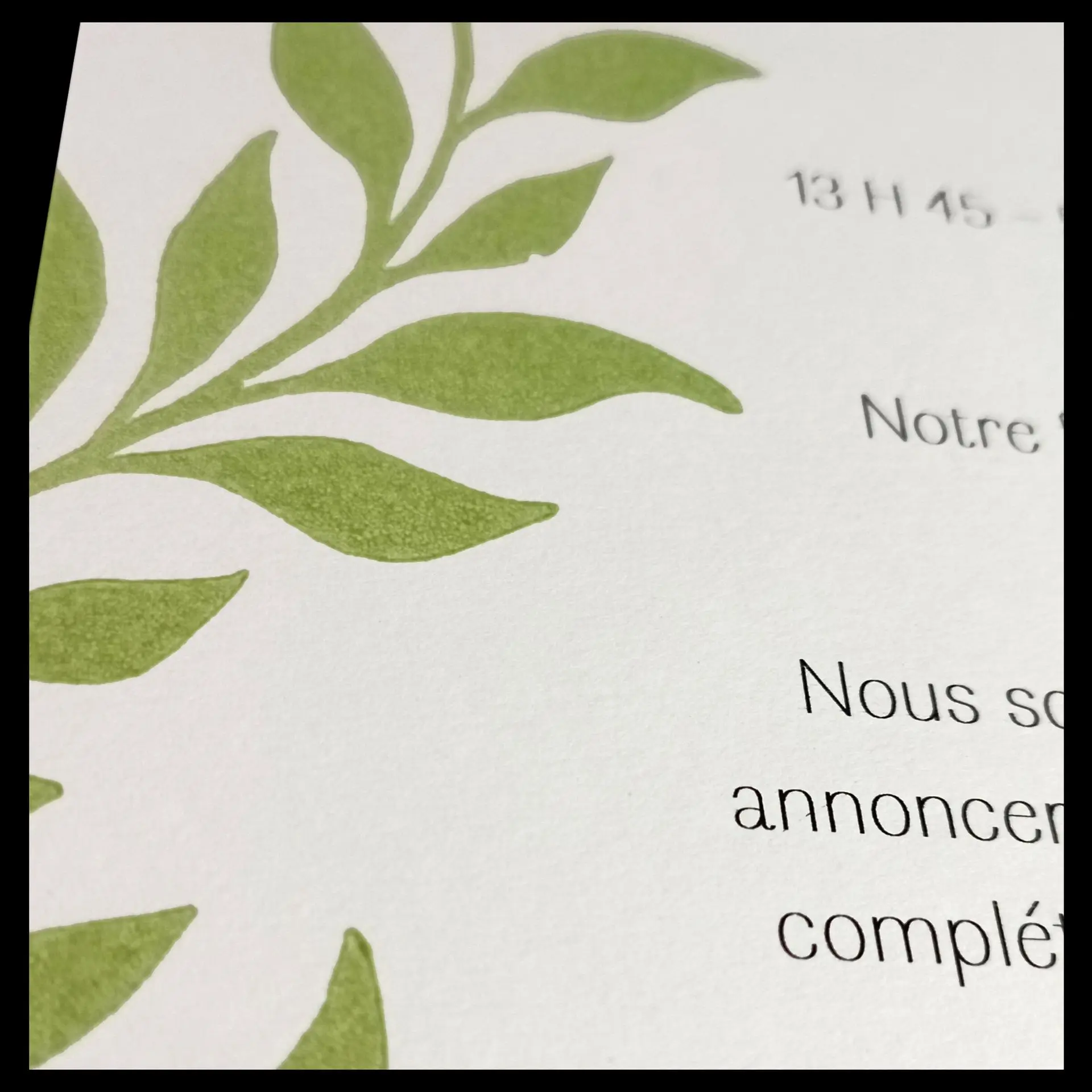 C’est pourquoi ses parents, Camille et Quentin ont choisi un fairepart réalisé à la manière traditionnelle de l’impression. Après des discussions sur ce que voulait le couple, le résultat fût validé et pu partir en production.