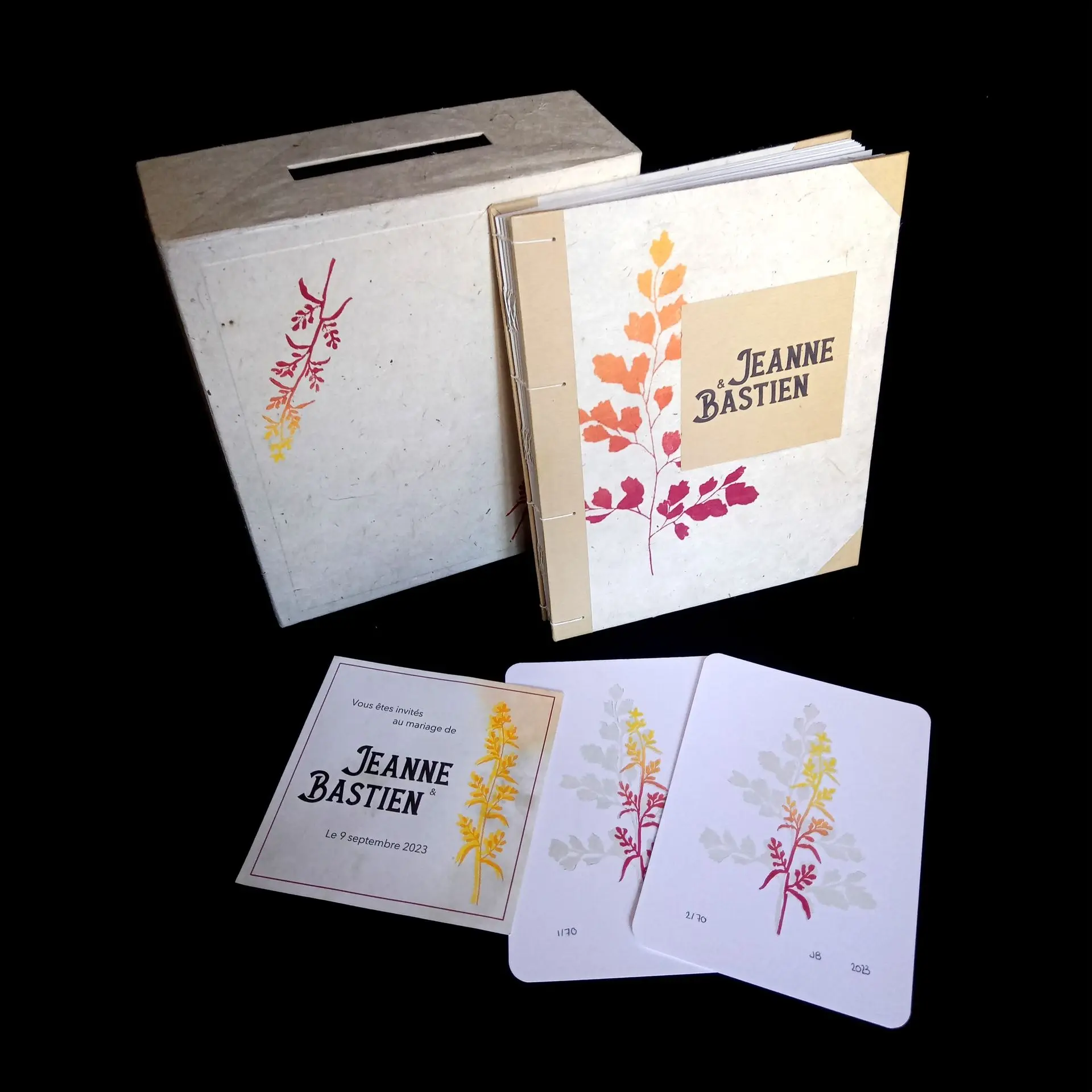L’impression d’art et le savoir-faire artisanal ouvrent la voie à des créations uniques et personnalisées, idéales pour marquer d’importants événements. C’est le cas pour le mariage de Jeanne et Bastien, qui souhaitaient créer une cohérence graphique à leurs couleurs.